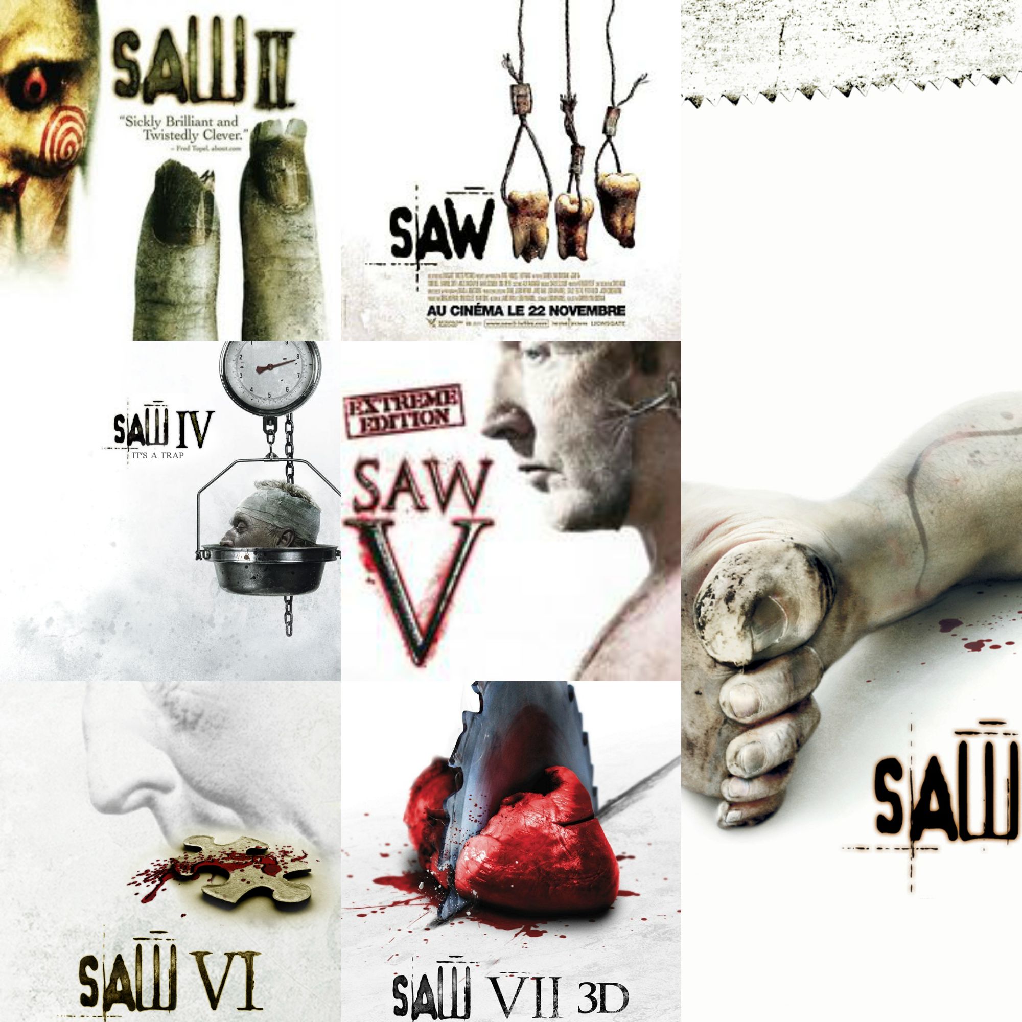 Saw nació como una película independiente con un presupuesto muy bajo pero su éxito y buena acogida fue tal que se ha convertido en una franquicia mundialmente reconocida. La trama gira en torno a John Kramer, un paciente terminal que decidió dejar una enseñanza a sus víctimas a través de juegos macabros para darles una lección moral y comprobar sus "ganas de vivir". De forma contraria a otros malos del cine, el villano John Kramer tiene unas motivaciones profundas a la hora de hacer lo que hace. Aunque pueda parecer que este individuo se dedica a arruinar las vidas ajenas, realmente sucede todo lo contrario, lo que quiere es preservar la vida.